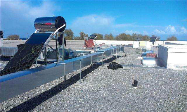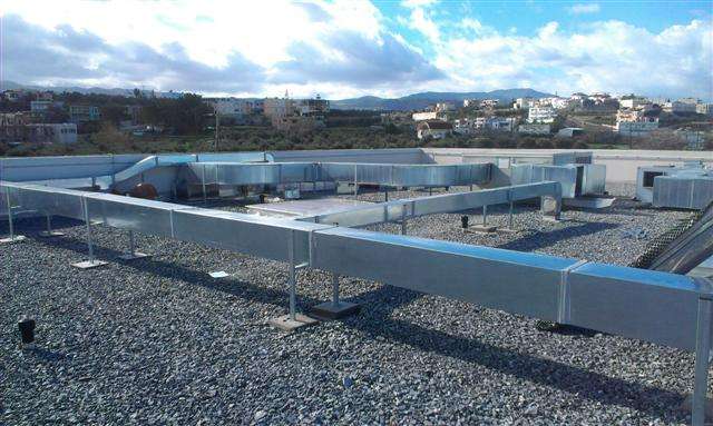 Στην ανέγερση του νέου Γυμνασίου – Λυκείου στην περιοχή Σακάκι Ρεθύμνου, περατώσαμε την τοποθέτηση του δικτύου αεραγωγών που μας ανατέθηκε, από γαλβανιζέ ελάσματα ορθογώνιας διατομής στην οροφή και στο εσωτερικού του κτηρίου.